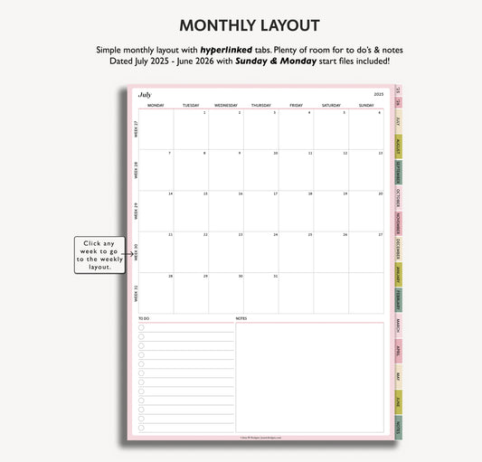 2025 2026 Mid Year Weekly Planner | Minimal Modern Simple Agenda