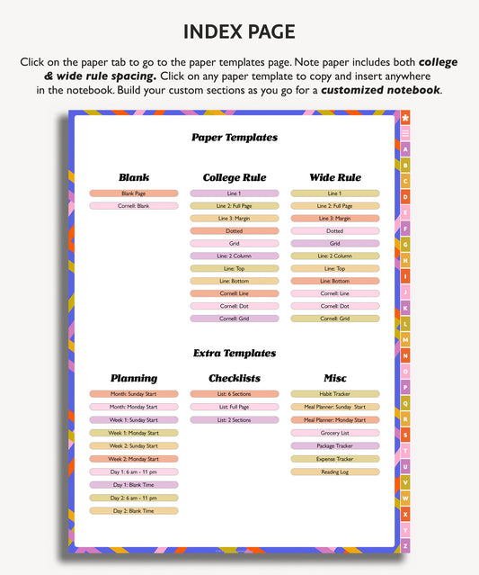 Rainbow A to Z Tab Notebook | Multiple Paper & Planning Templates