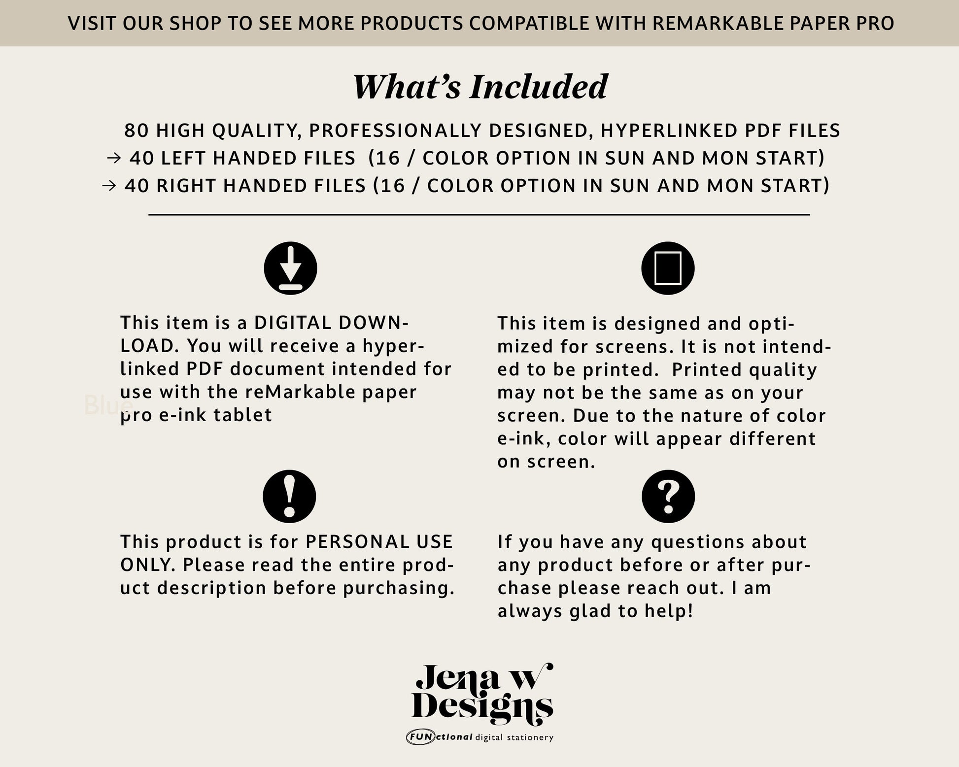 This digital planner is designed to fit your reMarkable pro screen while keeping the toolbar open.
