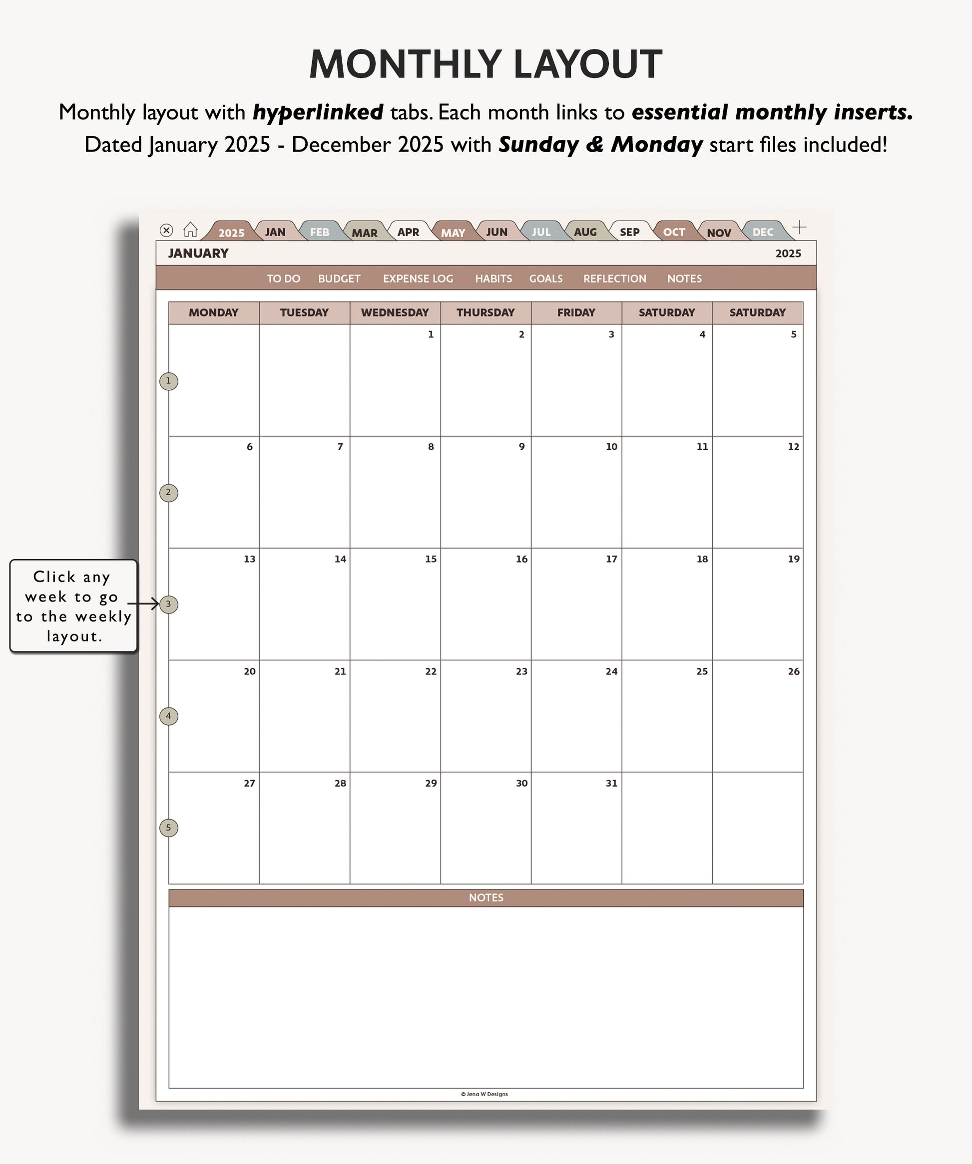 - 2 hyperlinked pdf files of your digital planner ( 1 Sunday and 1 Monday Start) to use in your preferred annotated hyperlink app such as GoodNotes. Review the compatibility tab if you would like to learn more about apps that work with digital pdf templates.