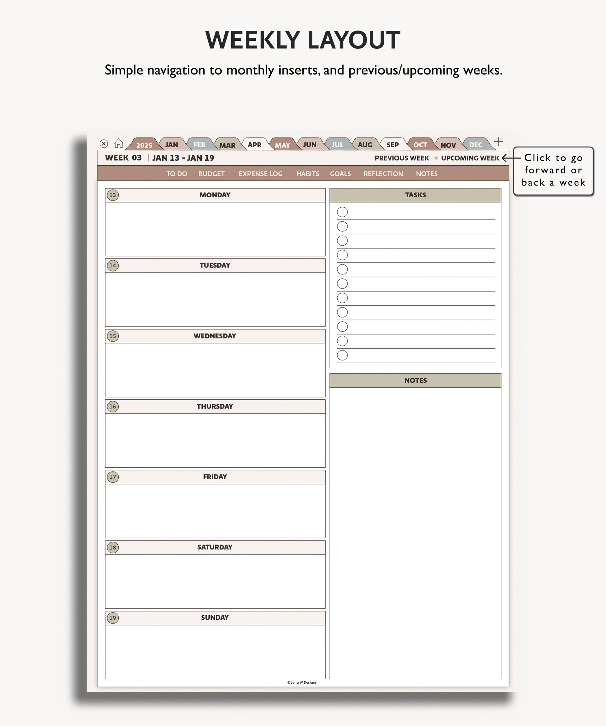 - Monthly, & Weekly, Pages Dated January 2025 - December 2025