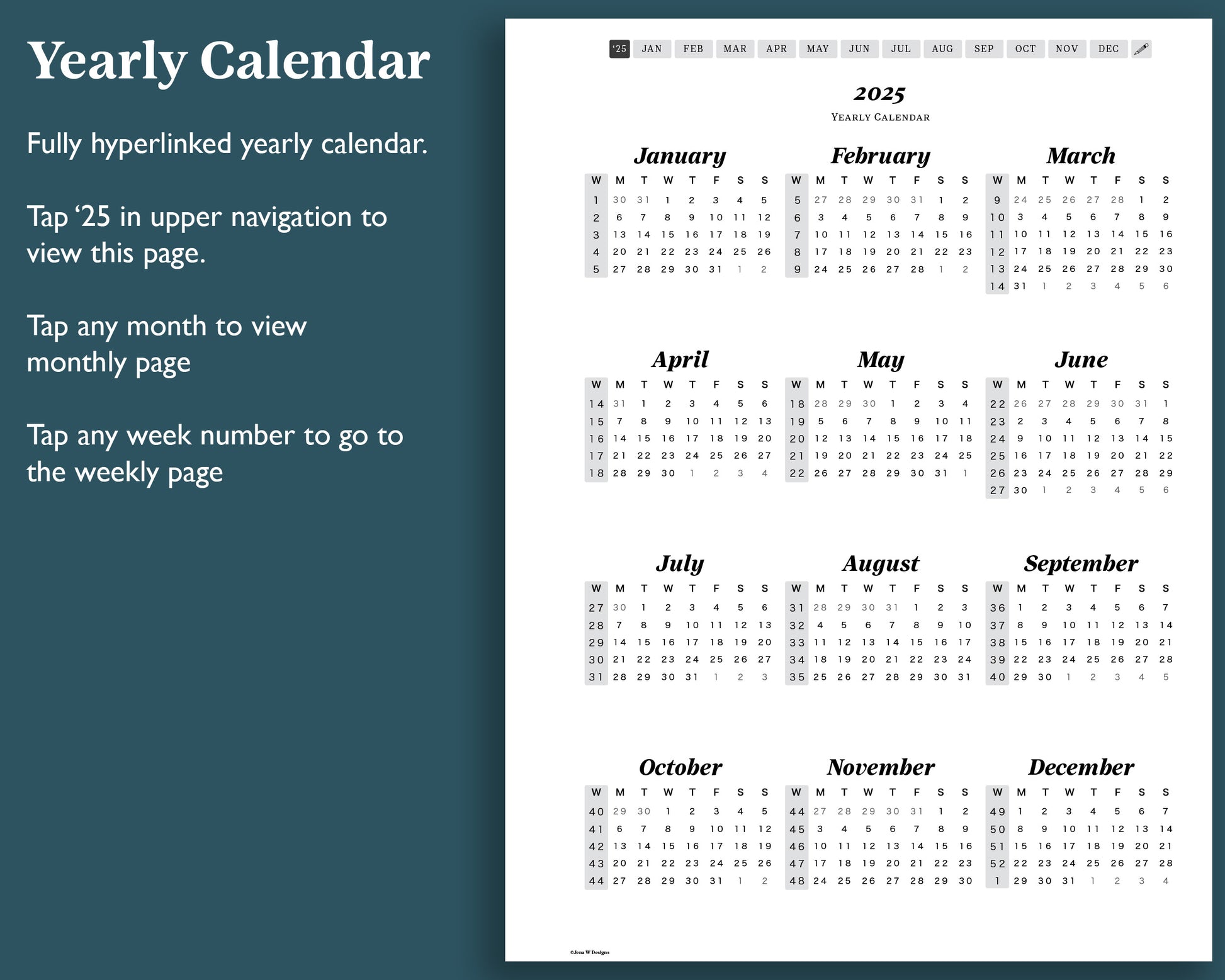 - Hyperlinked yearly calendar dated for 2025