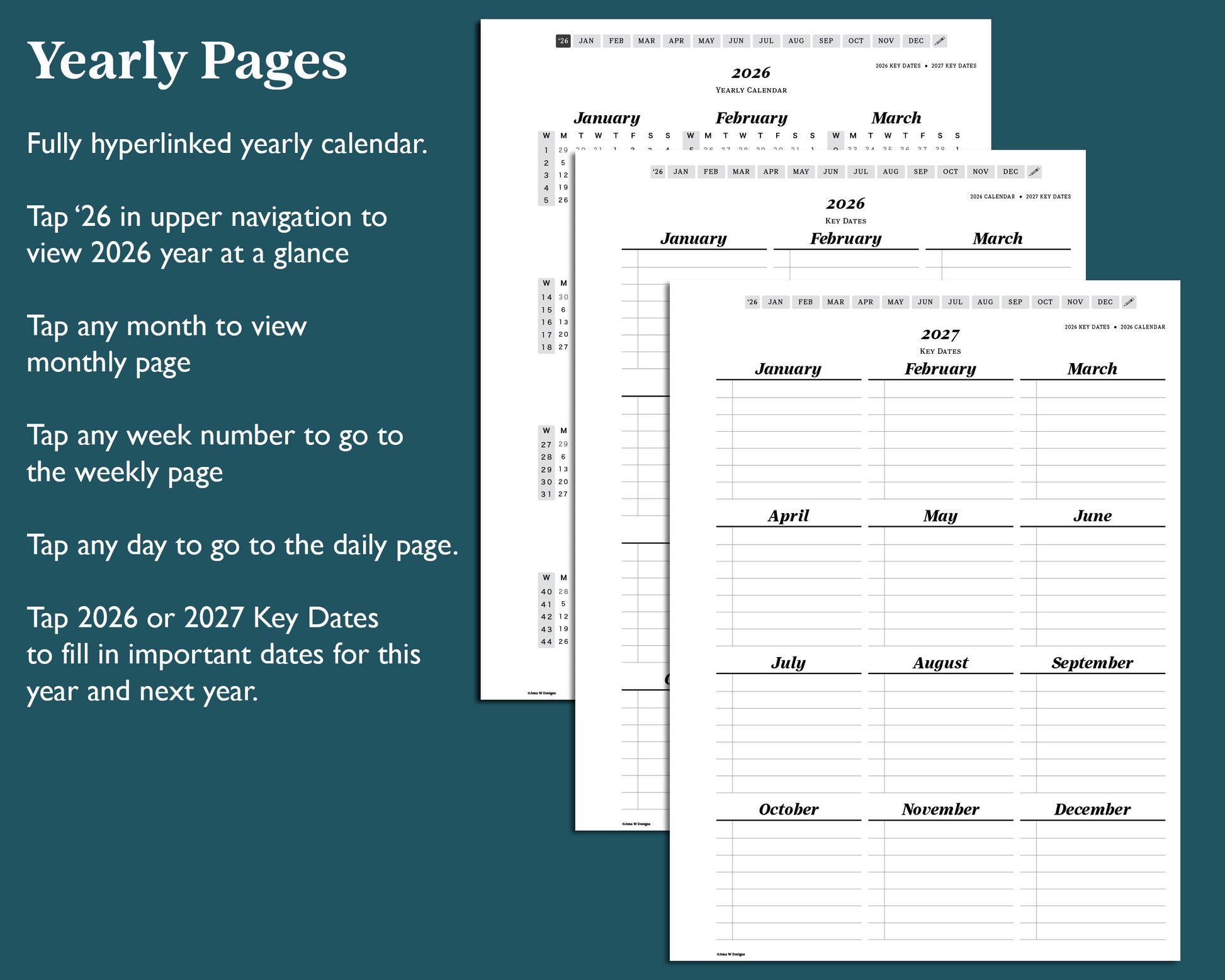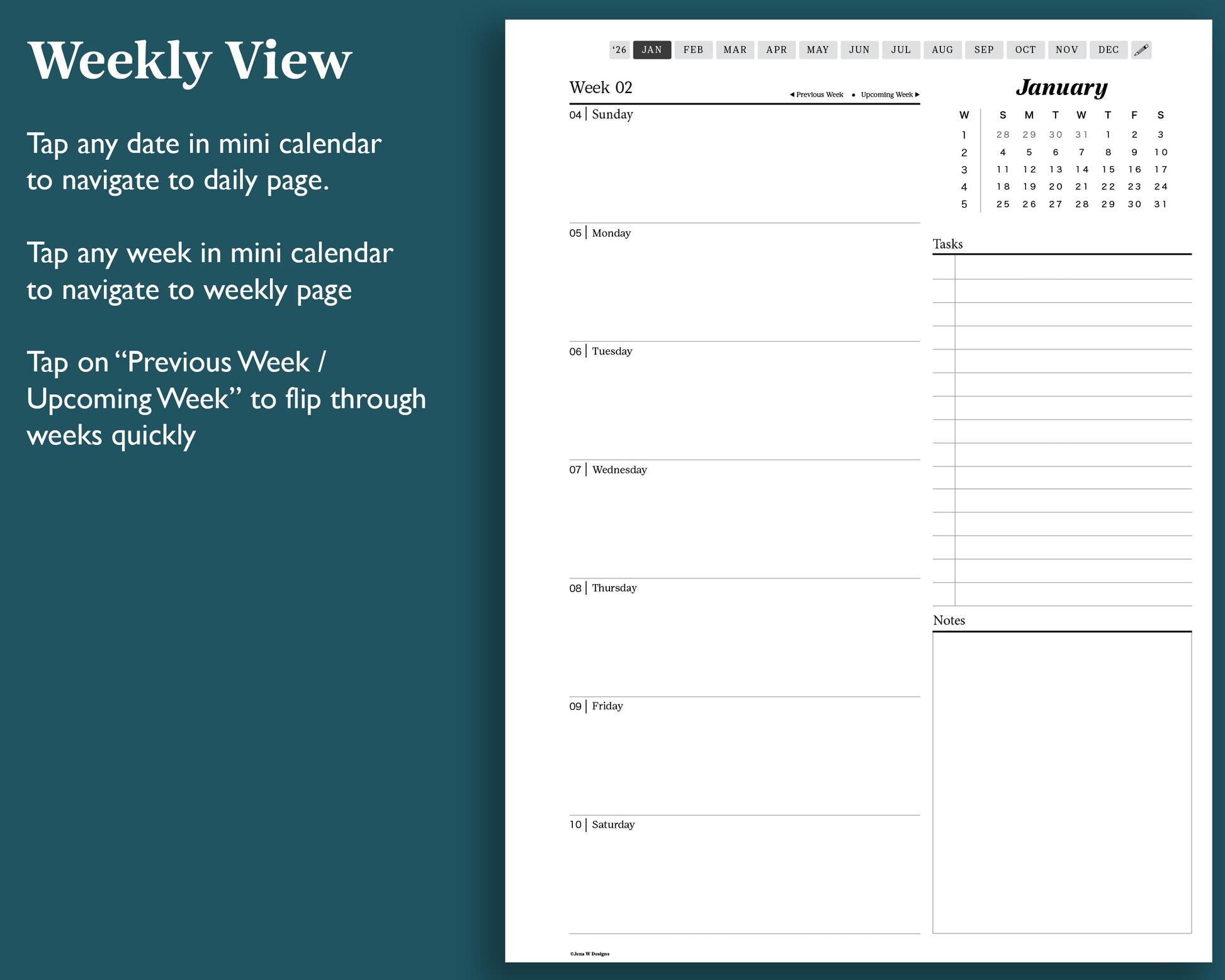 This high-quality pdf planner has a small file size of under 1.1 MB. Left and right-handed versions, Sunday and Monday start dates are all included.