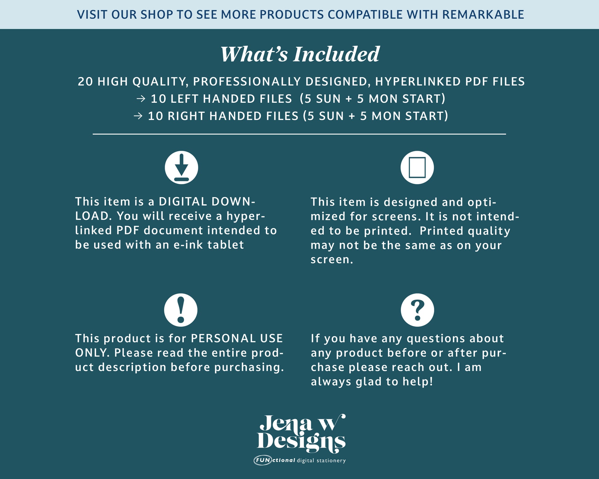 This digital planner is designed to fit your reMarkable screen while keeping the toolbar open.