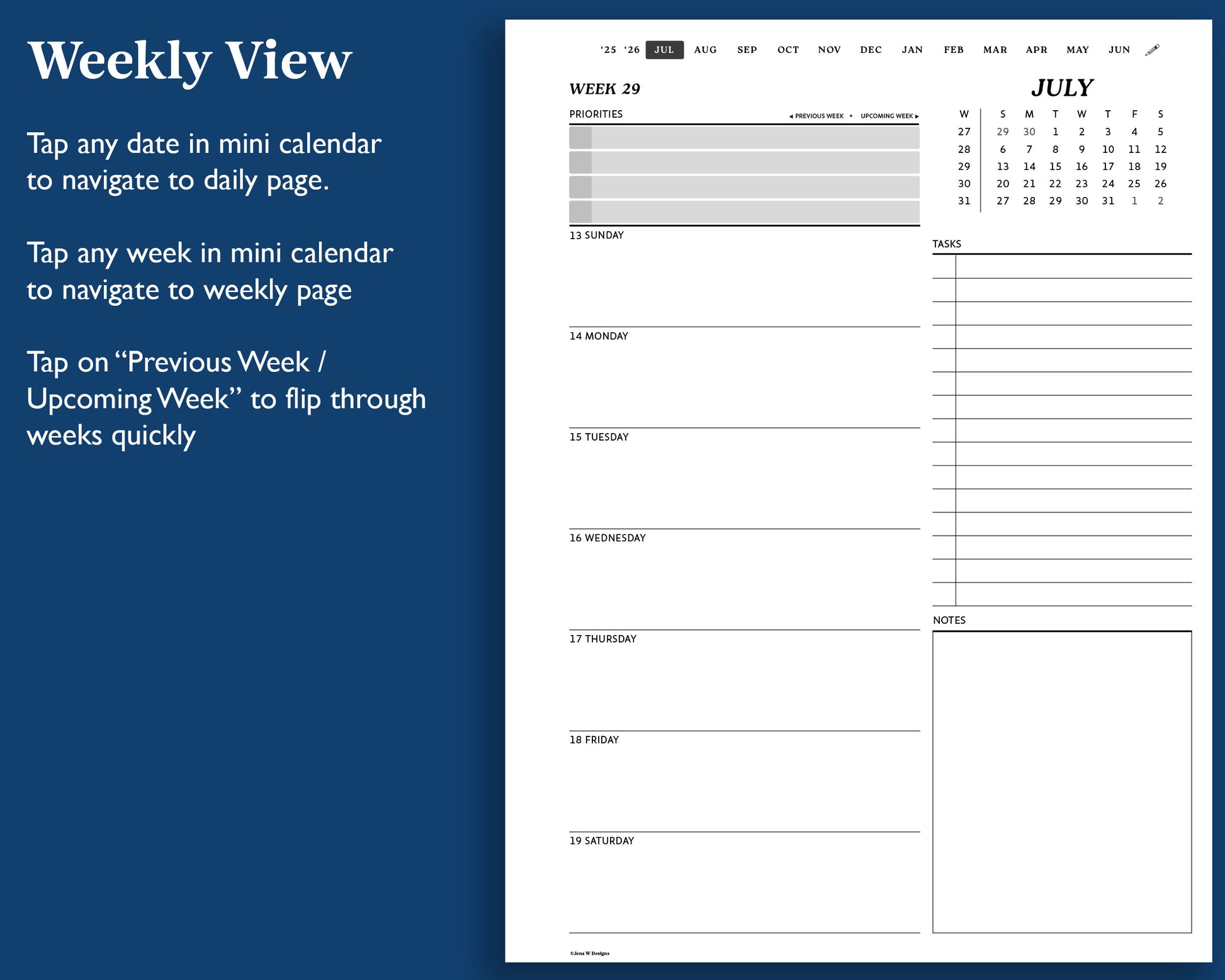 July 2025– June 2026 Digital Planner for Supernote | Hyperlinked Monthly, Weekly & Daily Pages