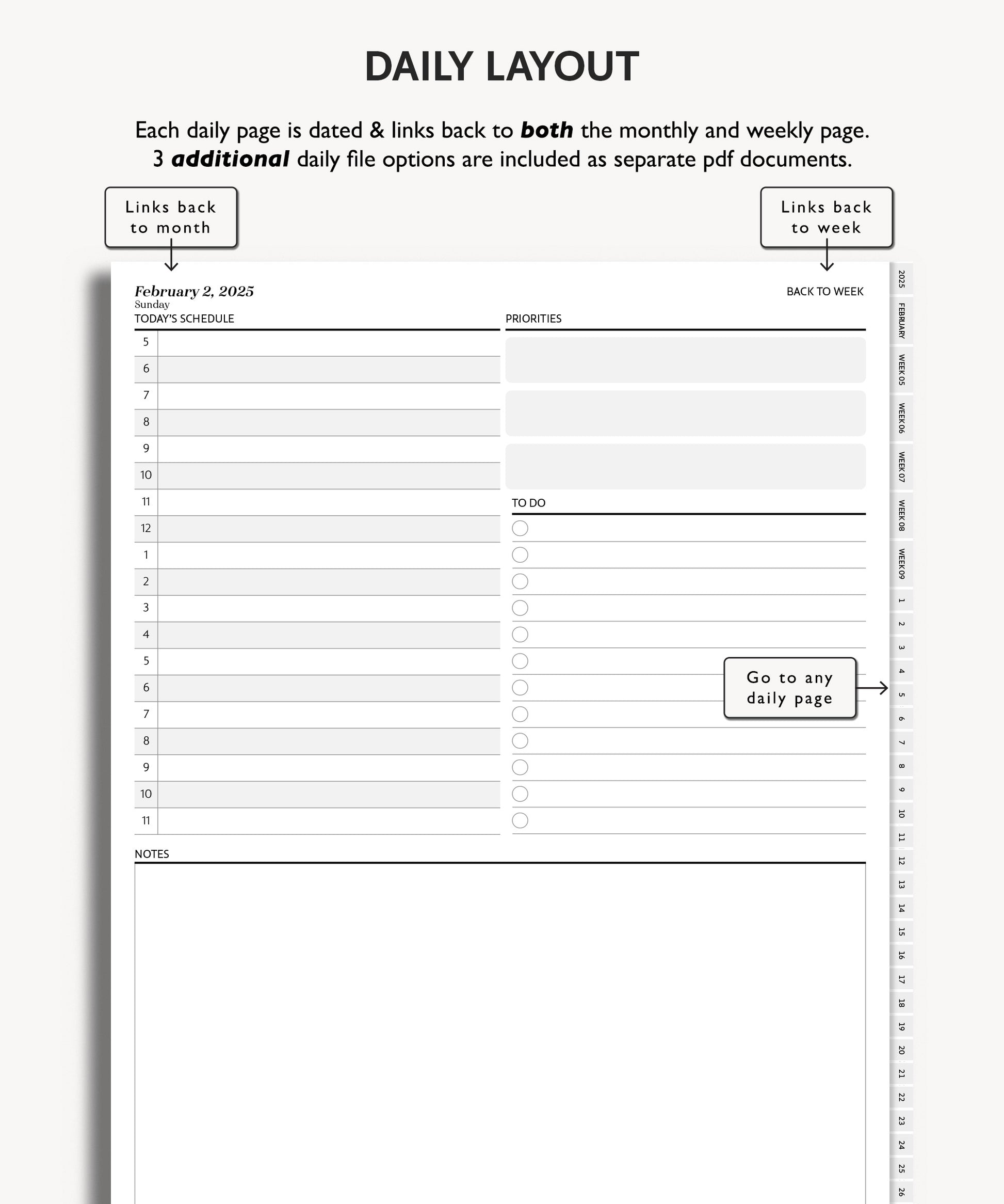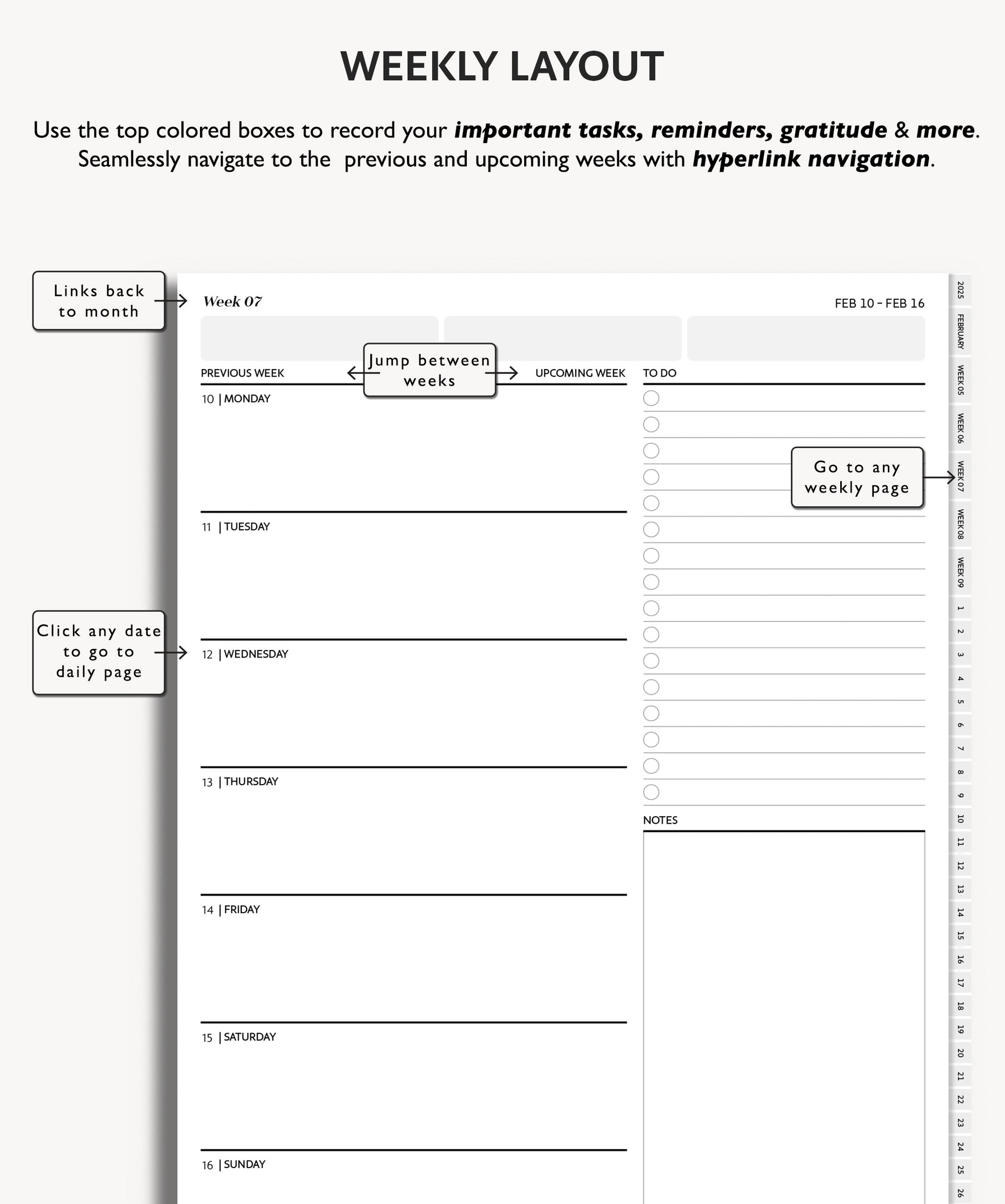 - Hyperlinked Monthly, Weekly & Daily Pages – Fast and seamless navigation