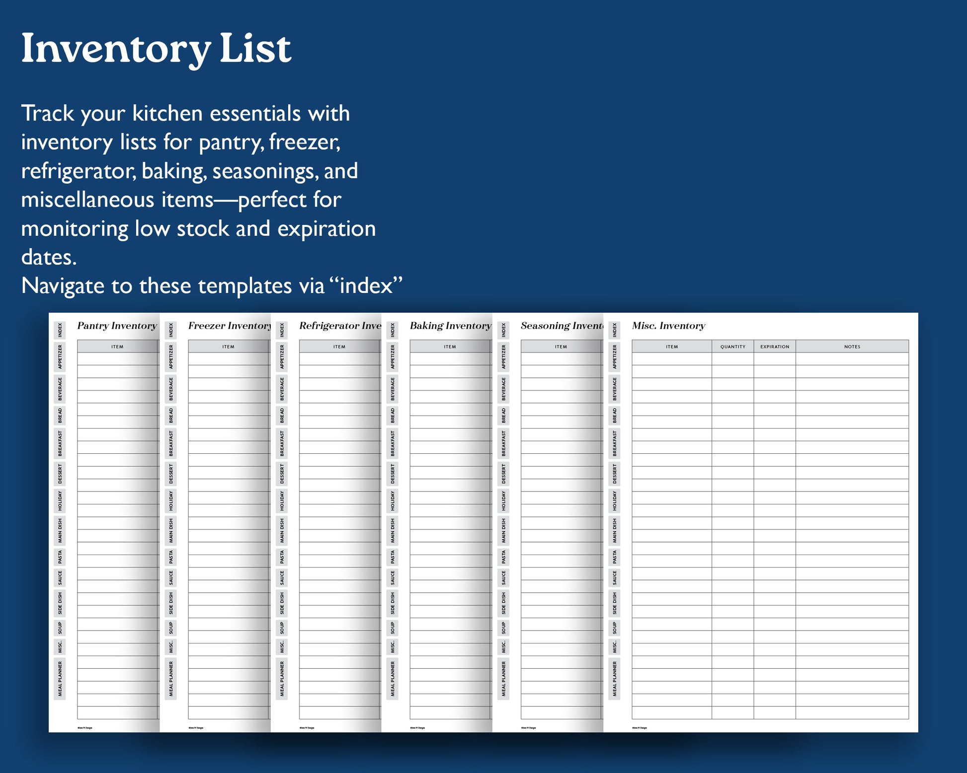 - Kitchen Inventory Lists – Keep track of pantry essentials and grocery needs.