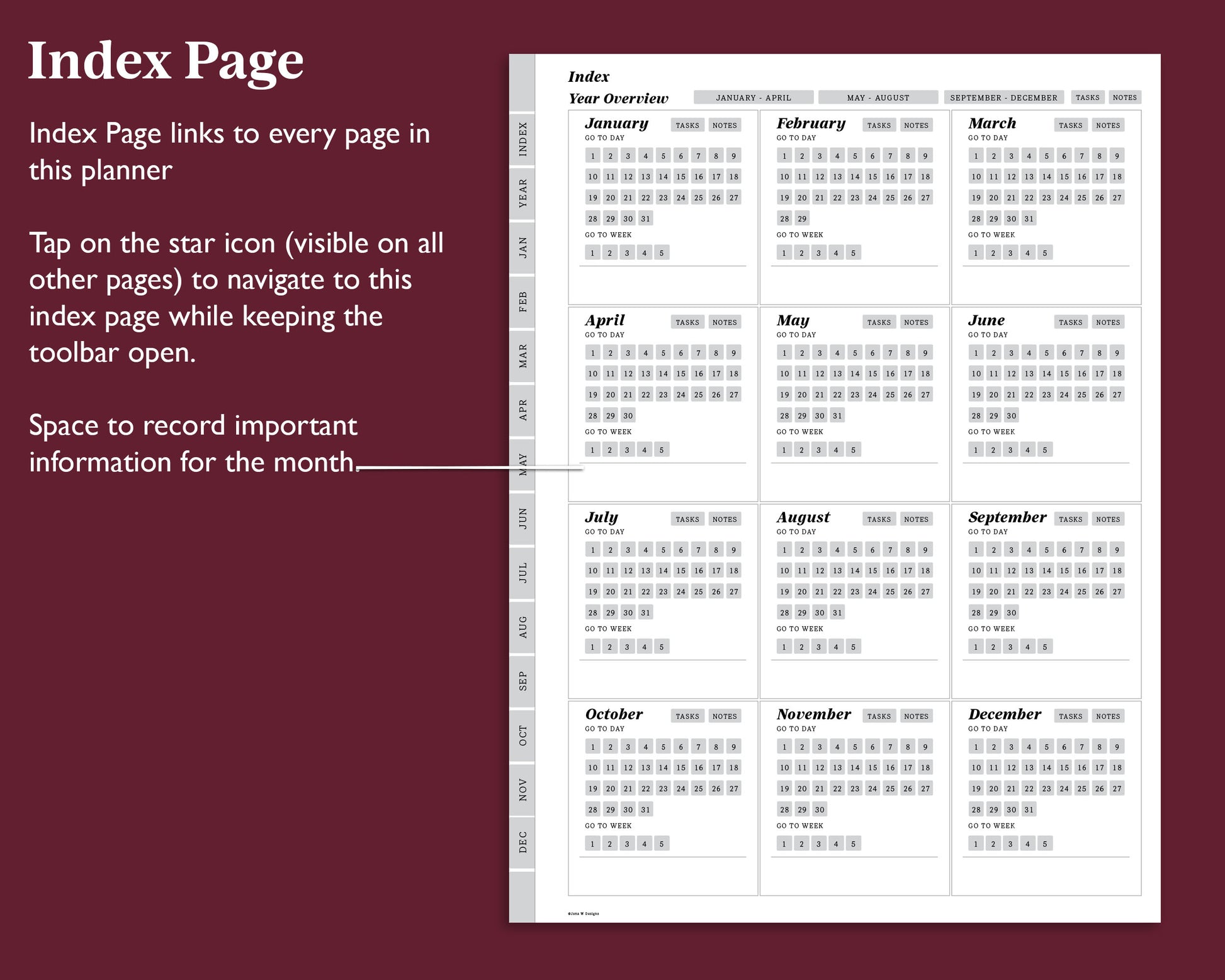 This pdf planner is designed and optimized for use with the Supernote e-ink tablet.